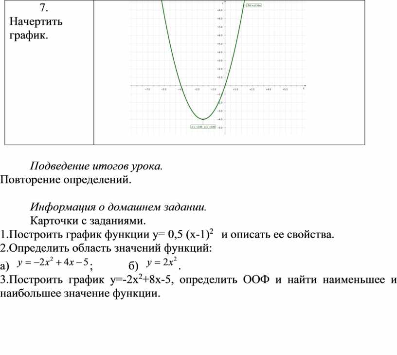 3.Построить график у=-2х2+8х-5, определить ООФ и найти наименьшее и наибольшее значение функции.