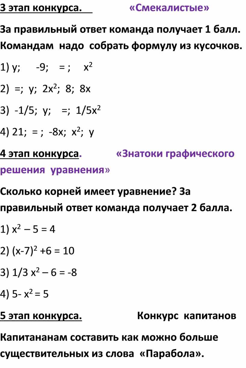 2 этап конкурса. «Знатоки квадратичной функции»