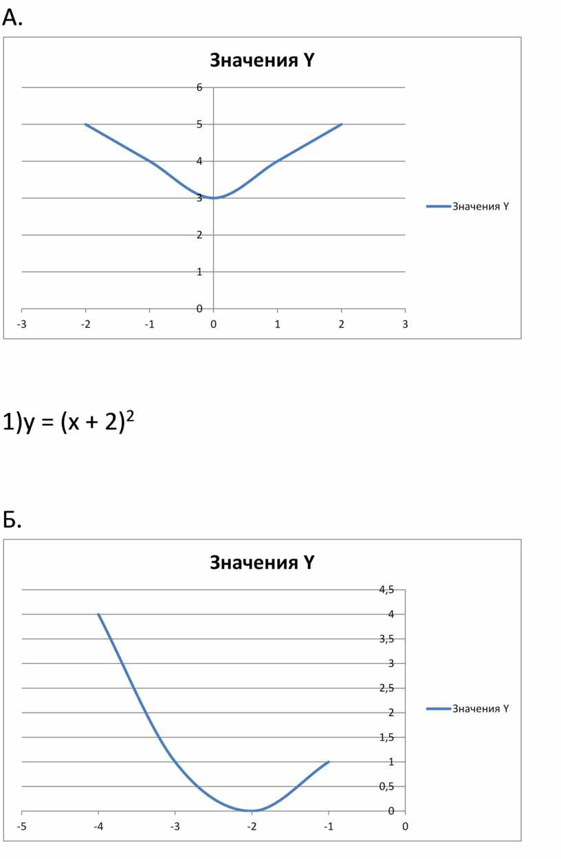 А. у = -2(х+ 6)2 Б. у= 1/3 х2 В. У= ¼ (х- 4)2 Г. У= 3х2 + 5