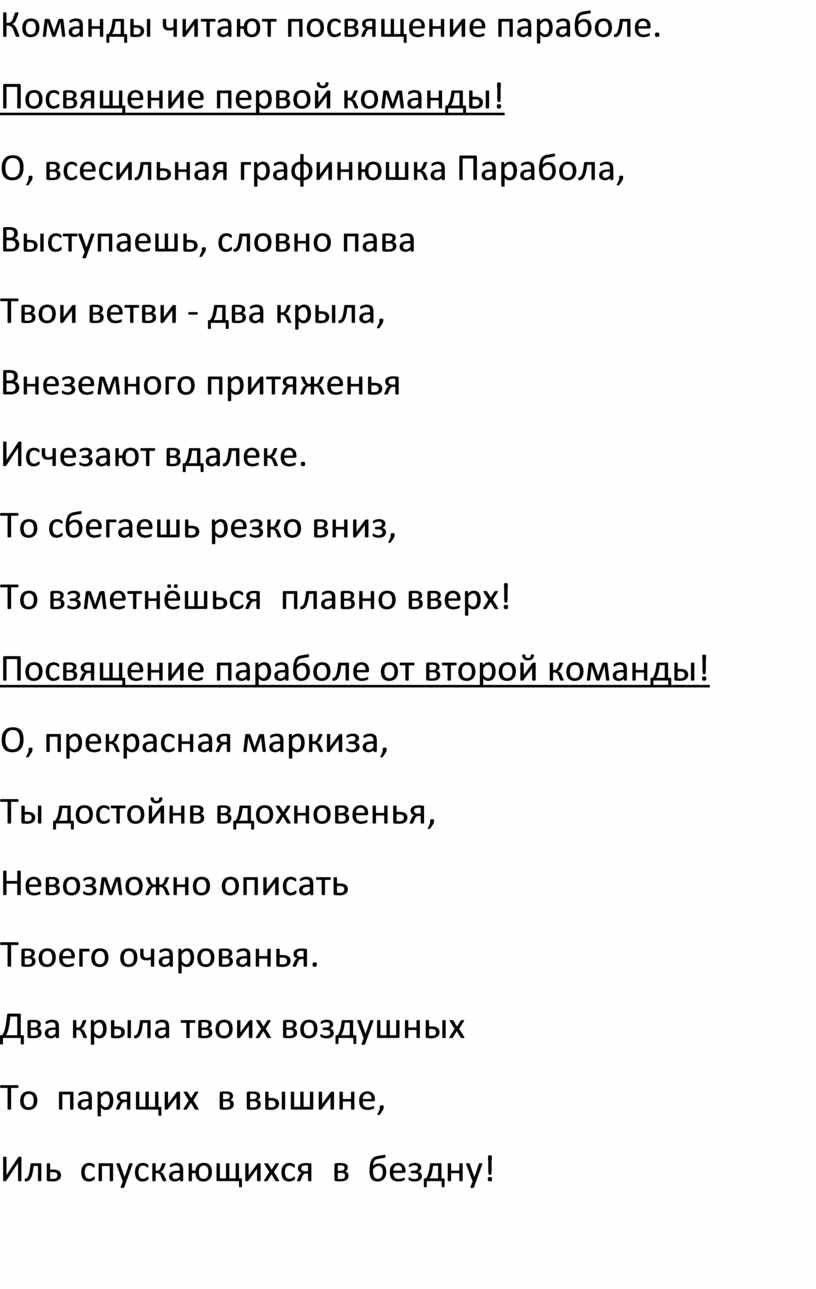 Команды читают посвящение параболе.
