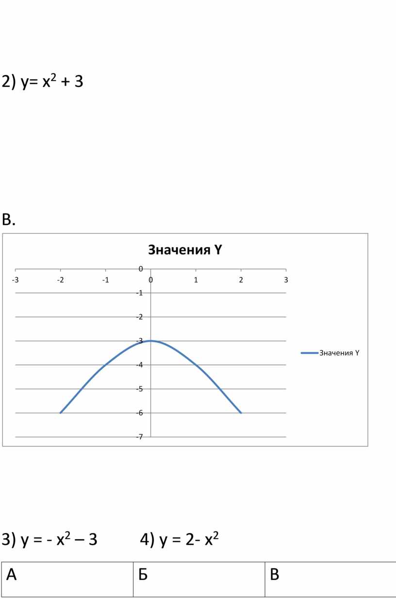 3) у = - х2 – 3 4) у = 2- х2