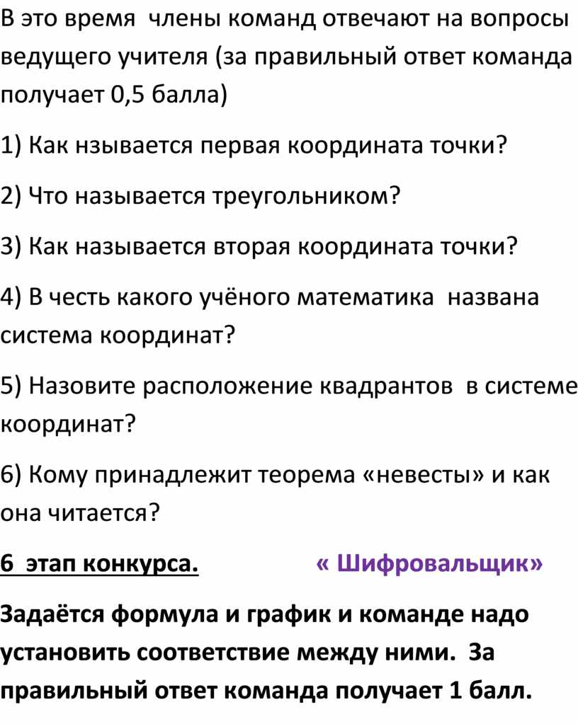 В это время члены команд отвечают на вопросы ведущего учителя (за правильный ответ команда получает 0,5 балла)