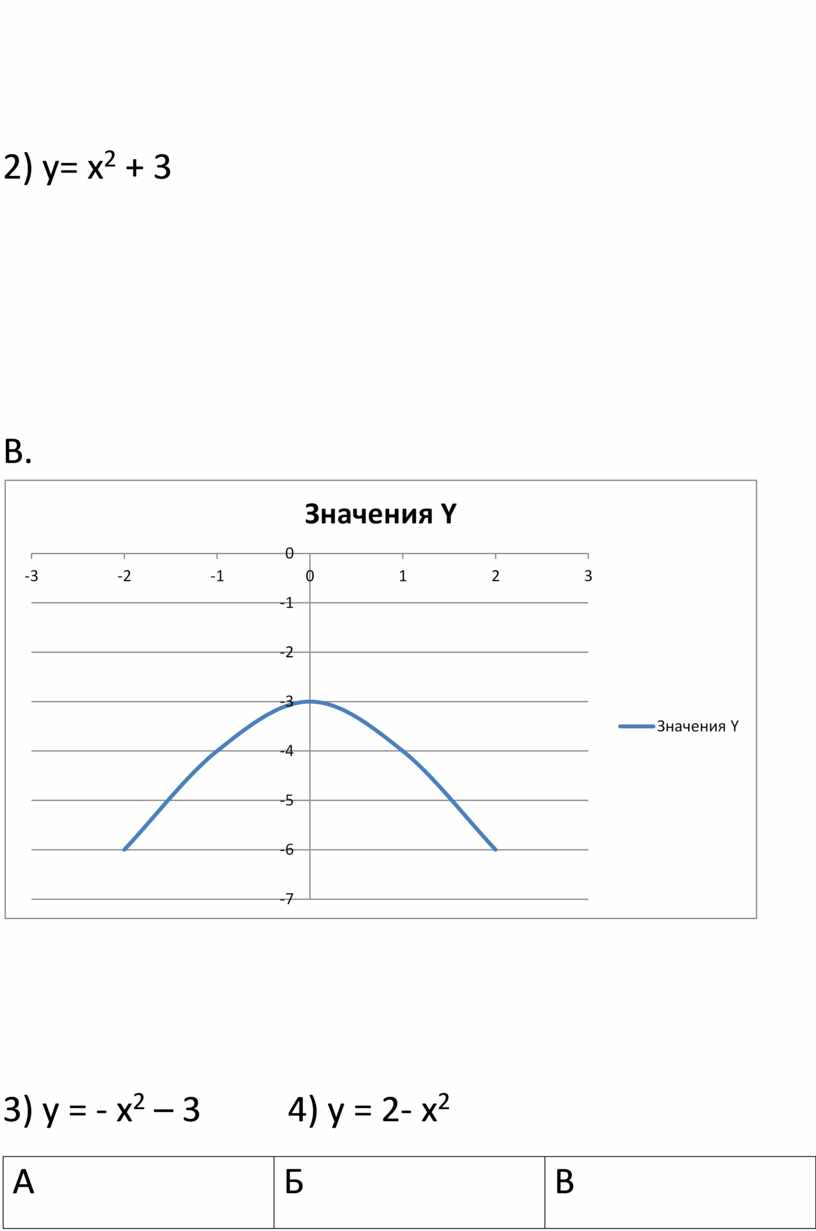 А. у = -2(х+ 6)2 Б. у= 1/3 х2 В. У= ¼ (х- 4)2 Г. У= 3х2 + 5