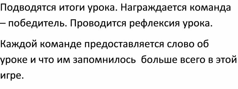 Каждой команде предоставляется слово об уроке и что им запомнилось больше всего в этой игре.