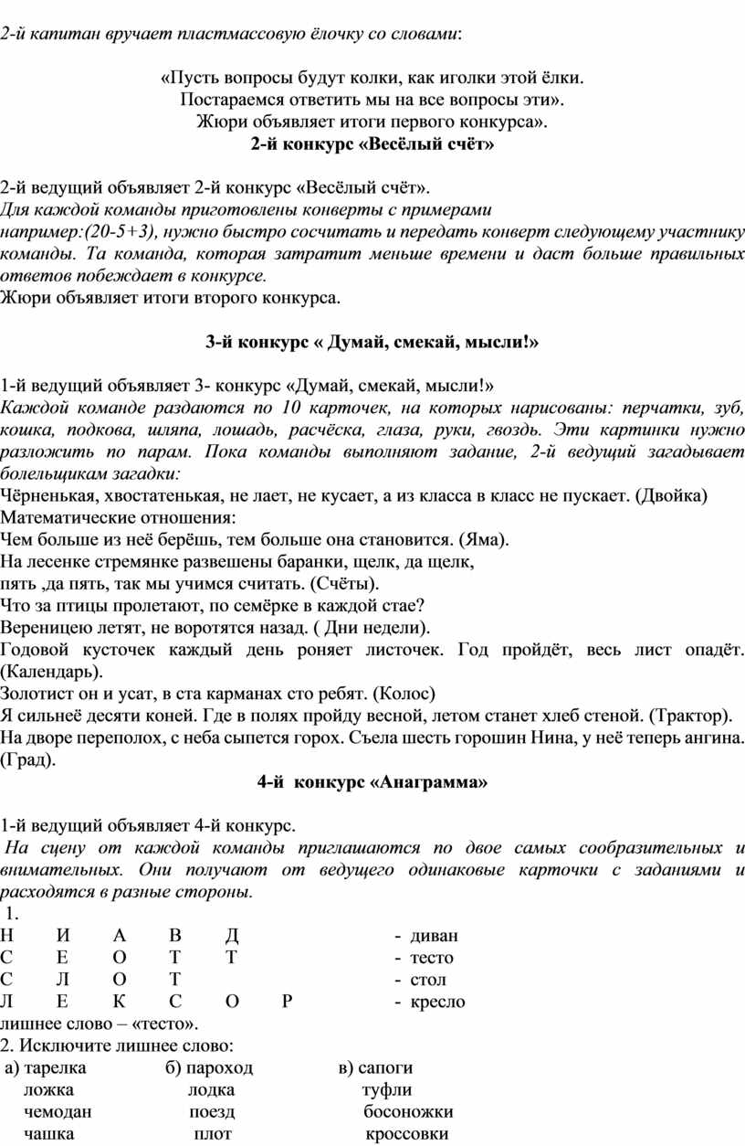 1-й ведущий: «Объявляем начало первого конкурса».