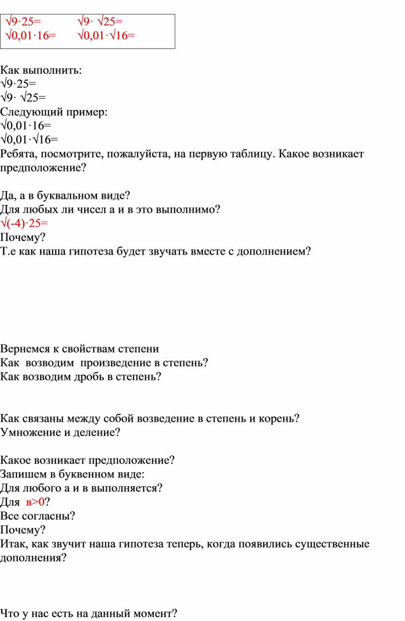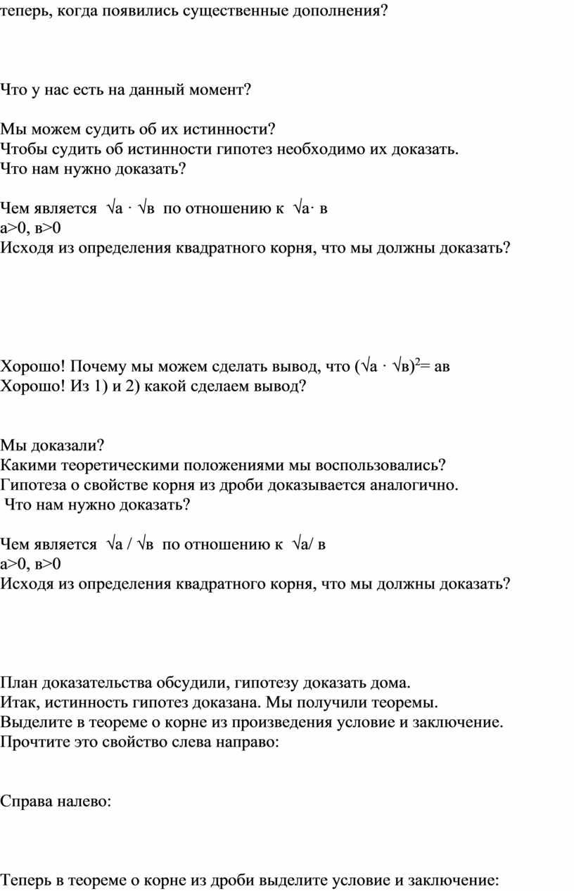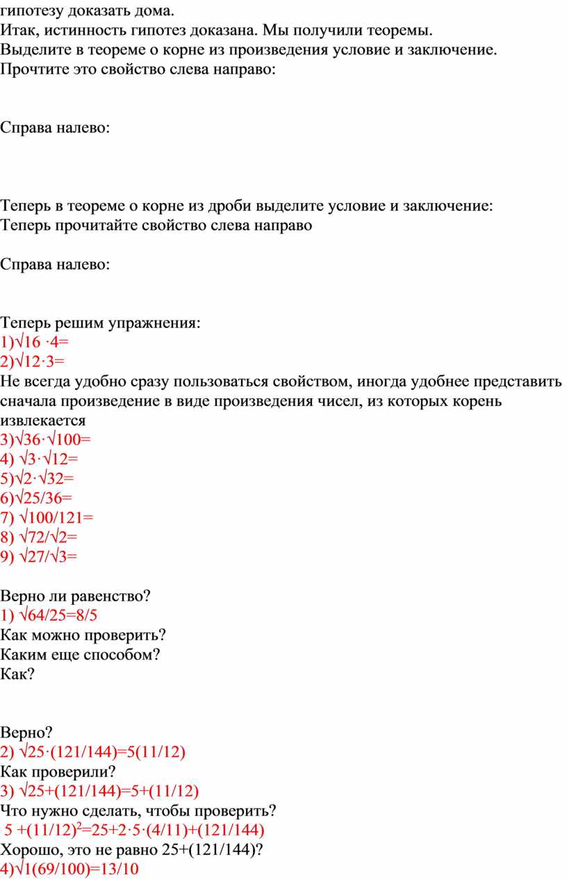 Мы доказали? Какими теоретическими положениями мы воспользовались? Гипотеза о свойстве корня из дроби доказывается аналогично. Что нам нужно доказать?