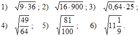 · повторение определения арифметического квадратного корня, свойств, теоремы о квадратном корне из произведения и из дроби;