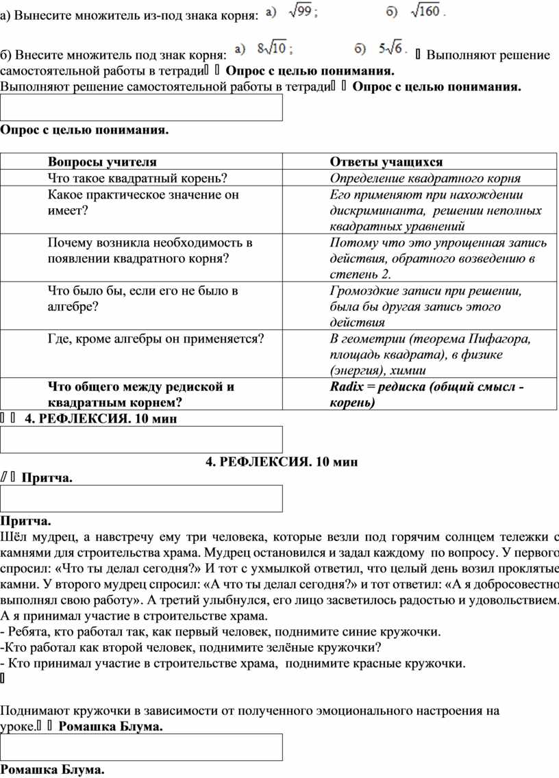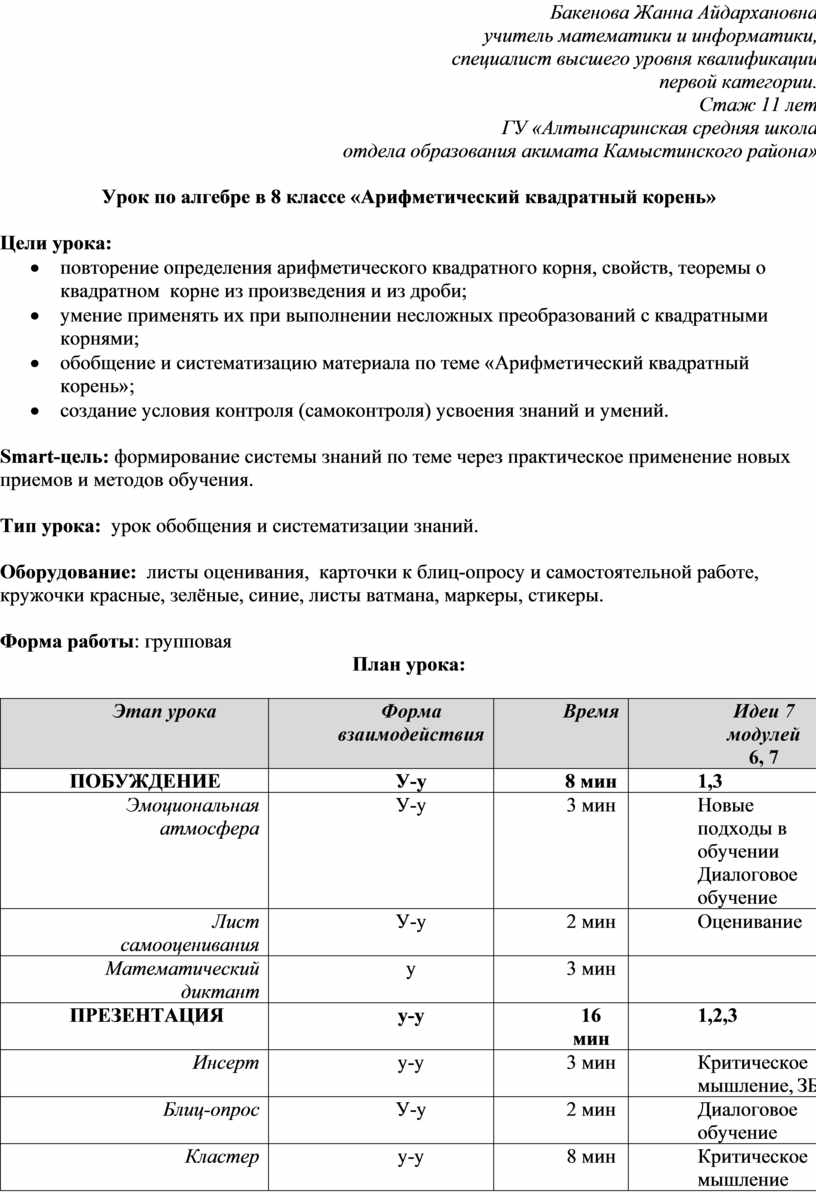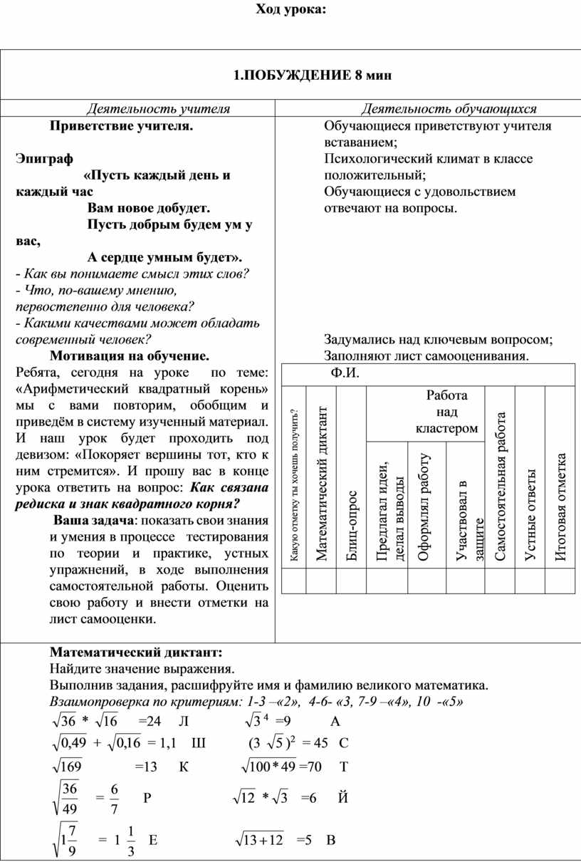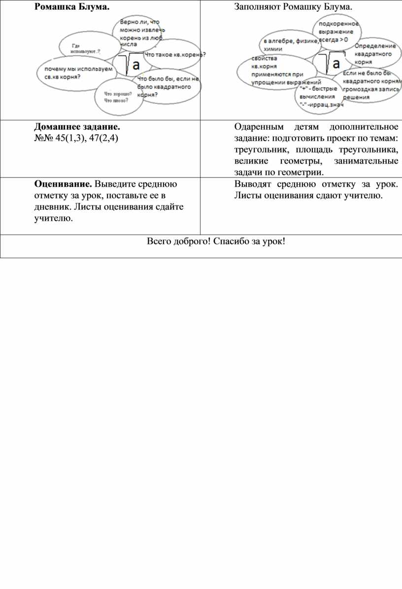 Урок по алгебре в 8 классе «Арифметический квадратный корень»