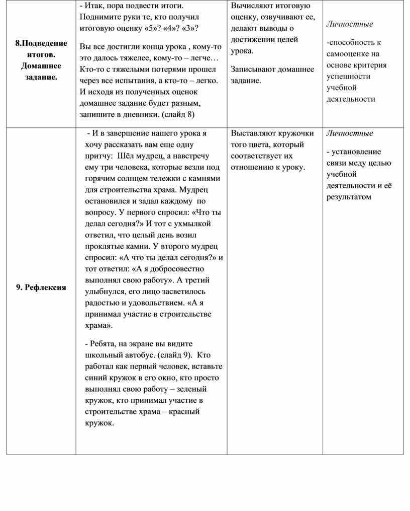 Вычисляют итоговую оценку, озвучивают ее, делают выводы о достижении целей урока. Записывают домашнее задание. |