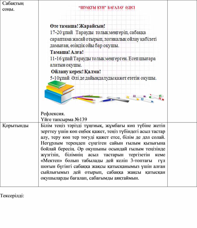 1.Ұйымдастыру кезең: Сәлемдесу, оқушыларды түгелдеу. 2. Оқушыларды топтарға бөлу 1- топ толымсыз 2- топ толық 3- топ келтірілген 3. «Бүгінгі күн, мен үшін» жағымды ахуал