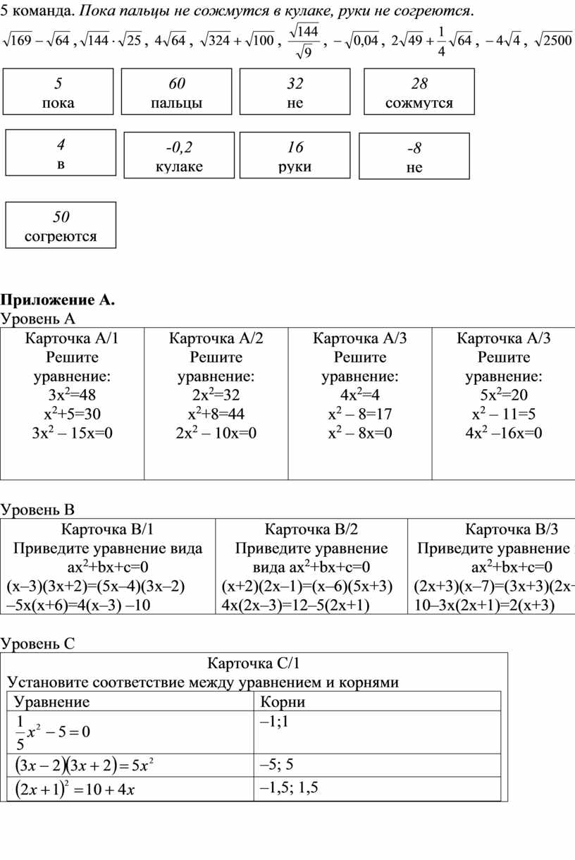 Приложение D.Составьте квадратное уравнение
