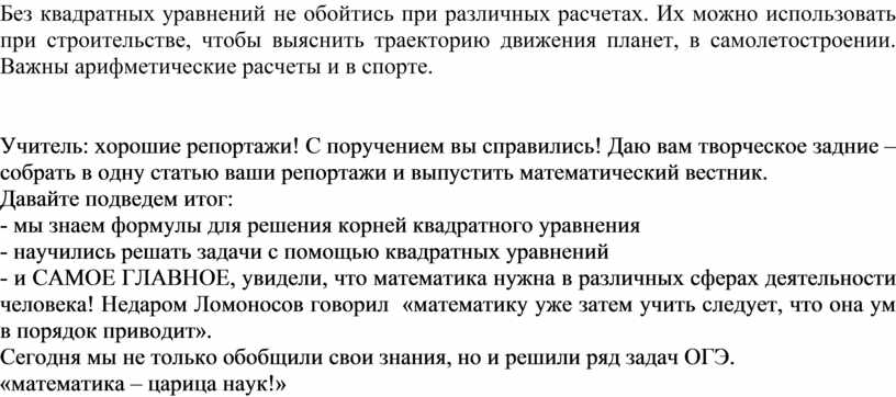 Без квадратных уравнений не обойтись при различных расчетах. Их можно использовать при строительстве, чтобы выяснить траекторию движения планет, в самолетостроении. Важны арифметические расчеты и в спорте.