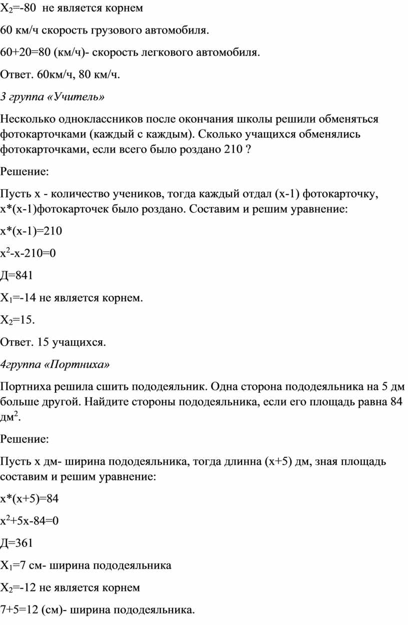 2. Отработать навыки решения квадратных и линейных уравнений.