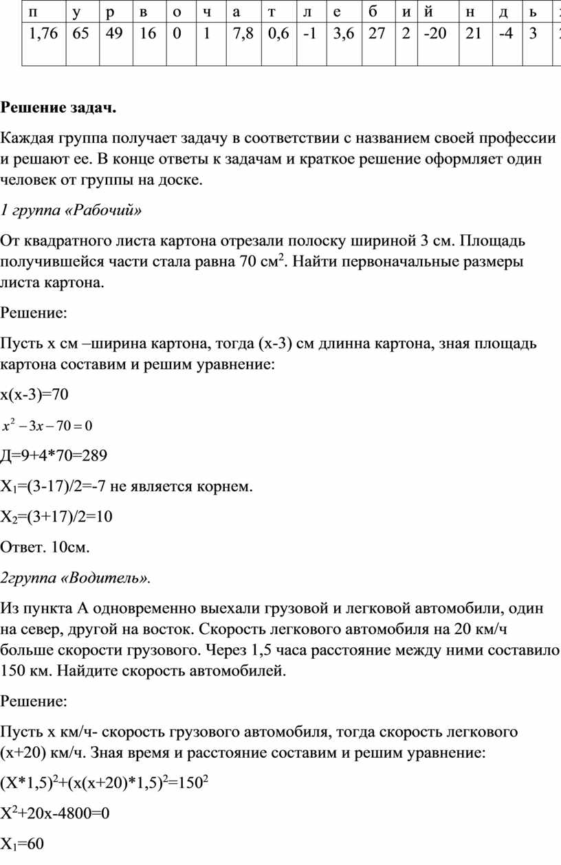 Каждая группа получает задачу в соответствии с названием своей профессии и решают ее. В конце ответы к задачам и краткое решение оформляет один человек от группы на доске.