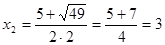 D = (-5)2 – 4 . 2 . (-3) = 49 |