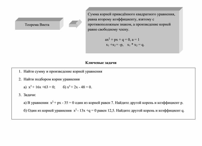 4). Один из корней уравнения х 2 – 26x + q = 0 равен 12. Найдите другой корень и свободный член q.