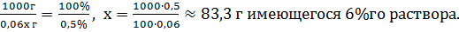 Сколько воды и 6%-го раствора потребуется, чтобы приготовить 1 кг 0,5%-го раствора перманганата калия?