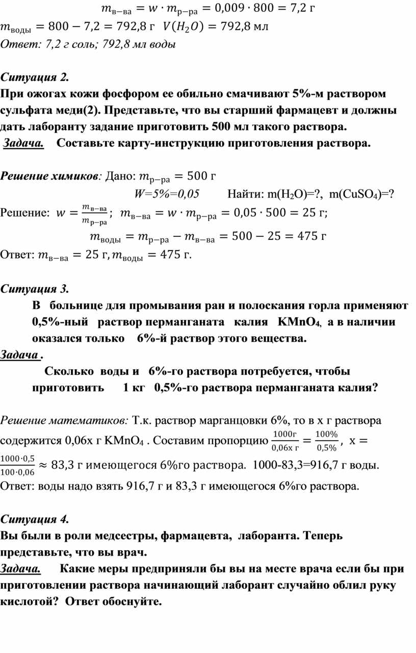 Задача. Составьте карту-инструкцию приготовления раствора.