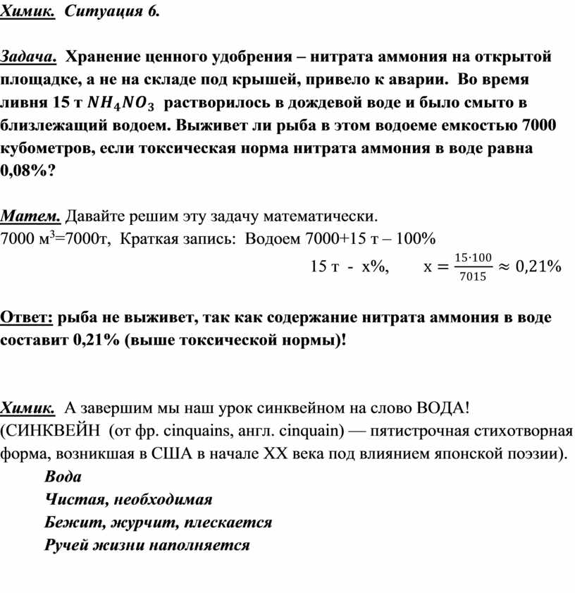 7000 кубометров, если токсическая норма нитрата аммония в воде равна 0,08%?