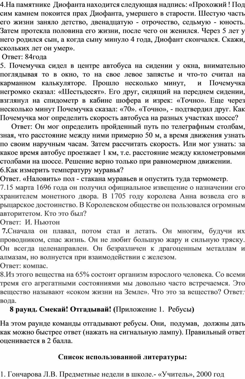 8 раунд. Смекай! Отгадывай! (Приложение 1. Ребусы)