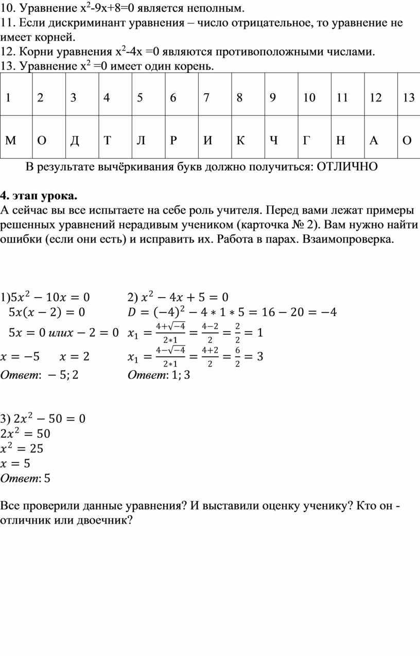 11. Если дискриминант уравнения – число отрицательное, то уравнение не имеет корней.