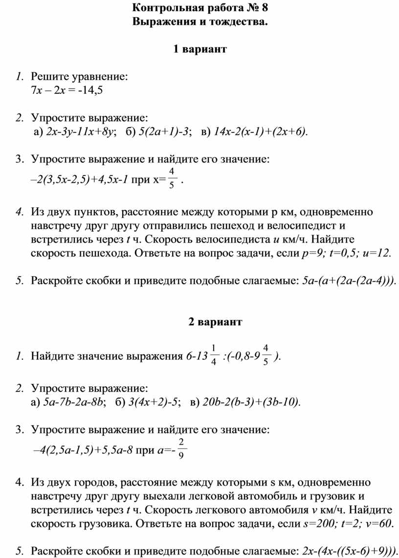 4. Из двух пунктов, расстояние между которыми p км, одновременно навстречу друг другу отправились пешеход и велосипедист и встретились через t ч. Скорость велосипедиста u км/ч. Найдите скорость пешехода. Ответьте на вопрос задачи, если p=9; t=0,5; u=12.
