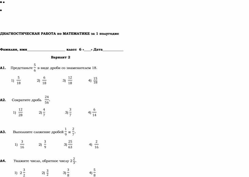 Фамилия, имя______________________ класс 6 «____» Дата____________ Вариант 2 А1. Представьте 2)