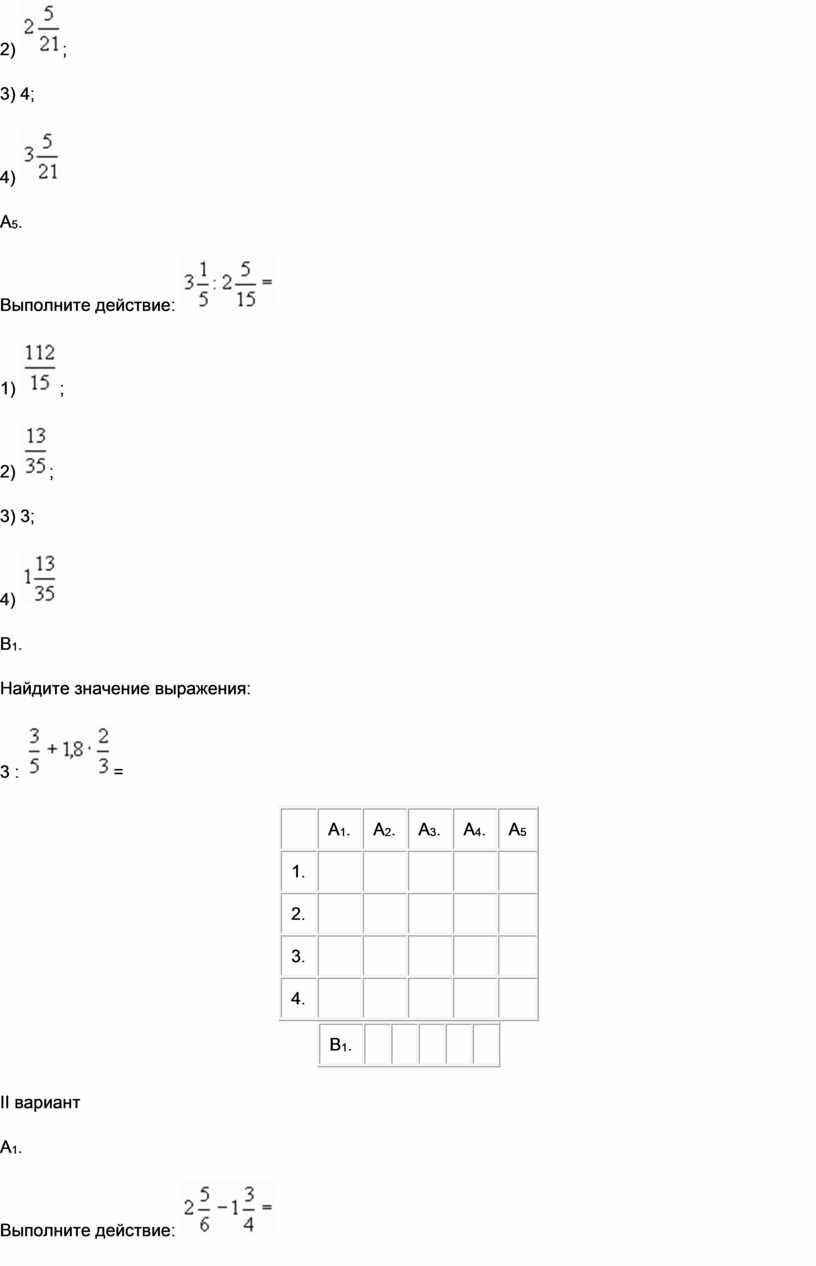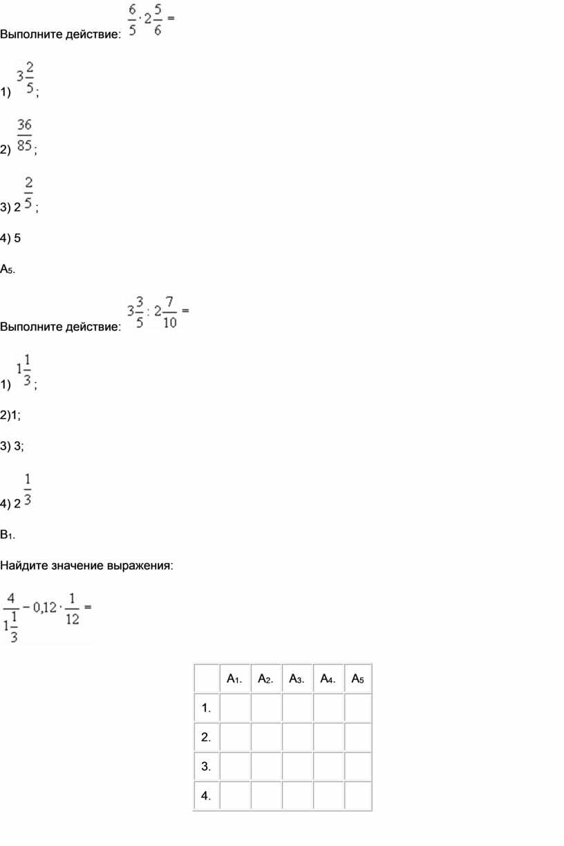 Задание под В1 вы выполняете по действиям и затем полученный ответ переводите в десятичную дробь и записываете в банк ответов.