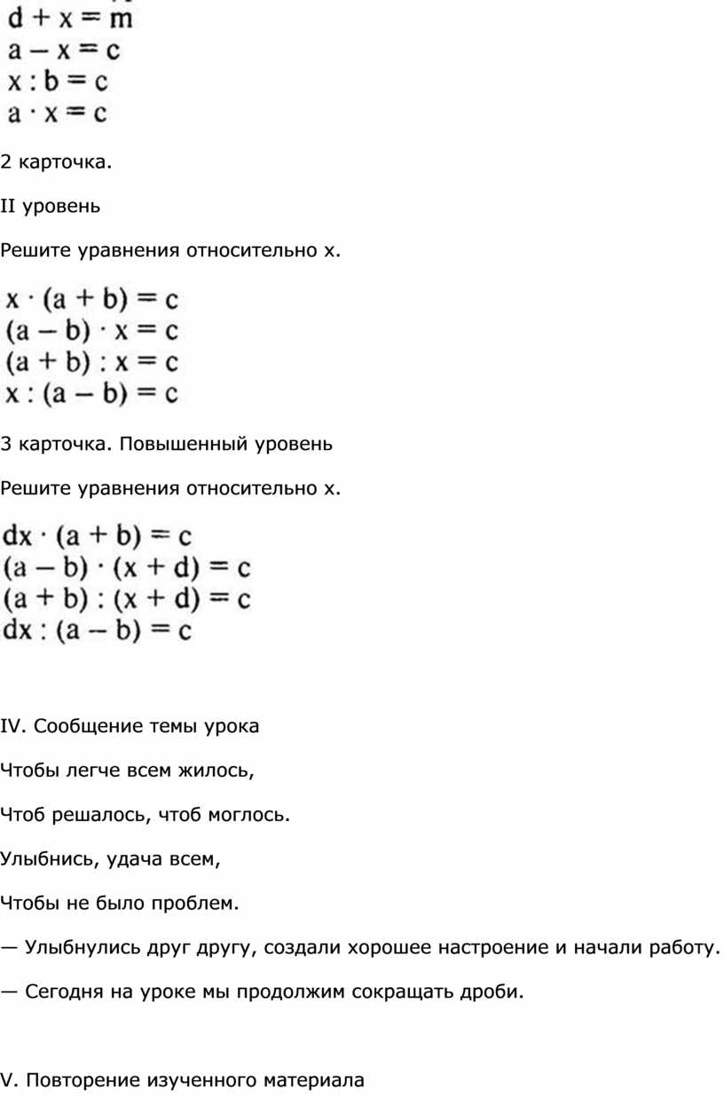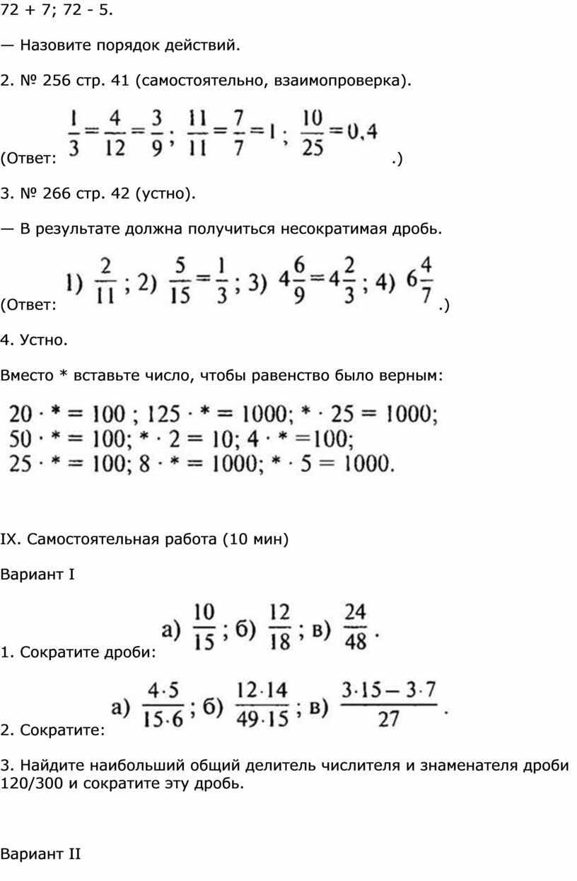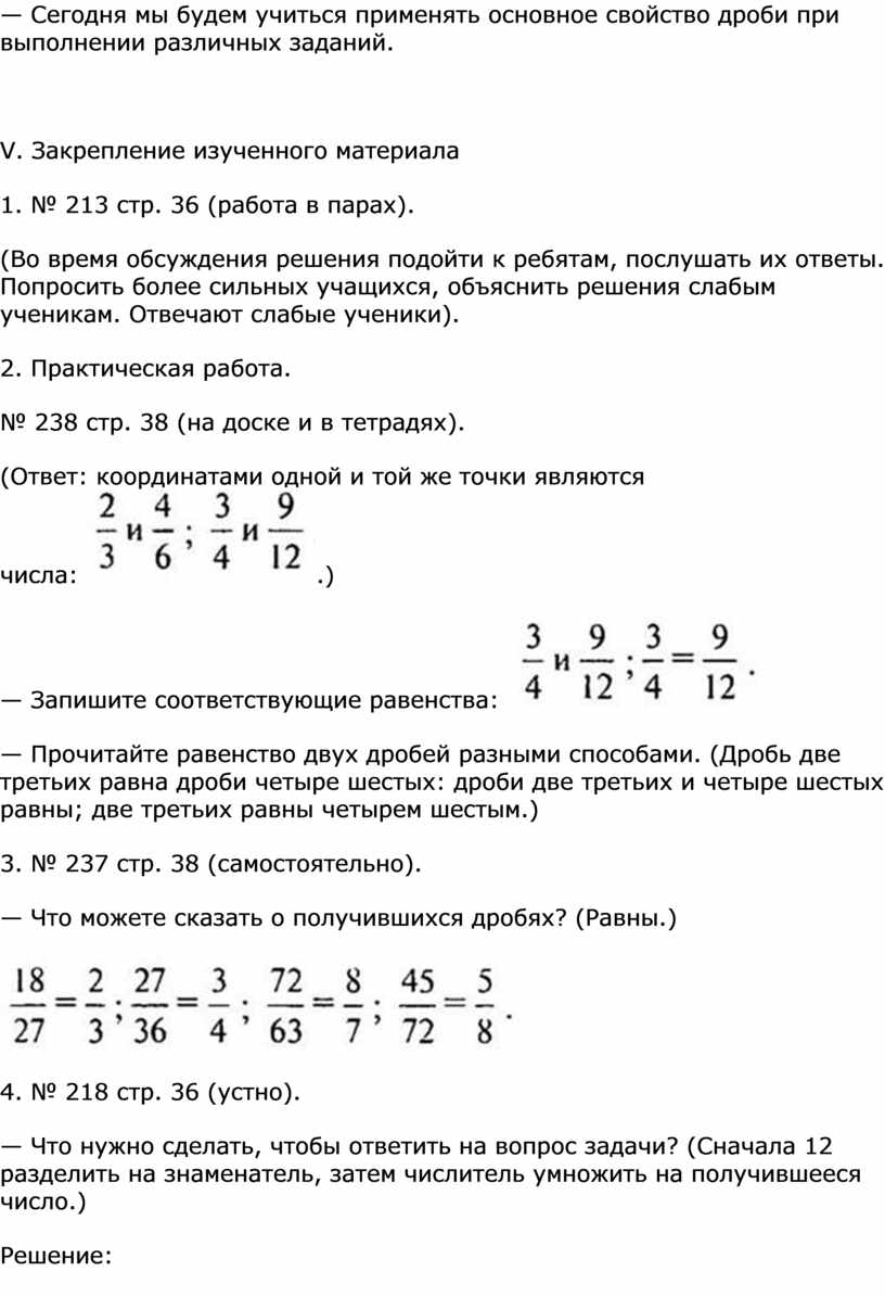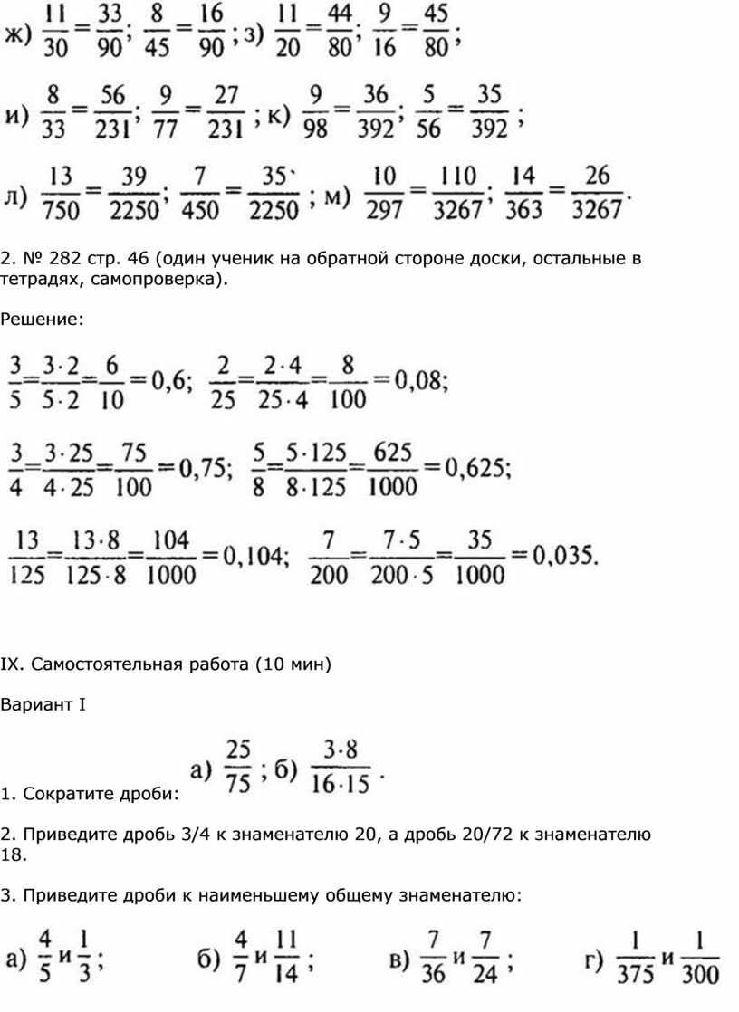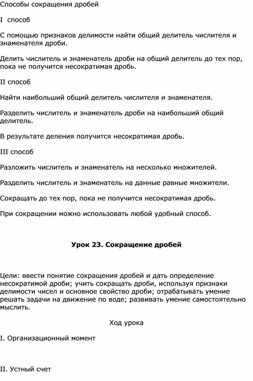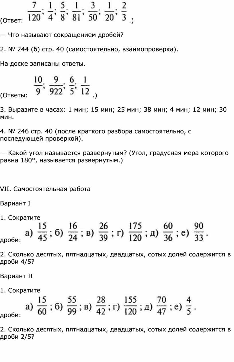 Цели: учить применять основное свойство дроби при выполнении заданий; развивать грамотную математическую речь; совершенствовать сочетание индивидуальной и коллективной форм работы с учащимися; проверить знания и навыки учащихся по изученному материалу.
