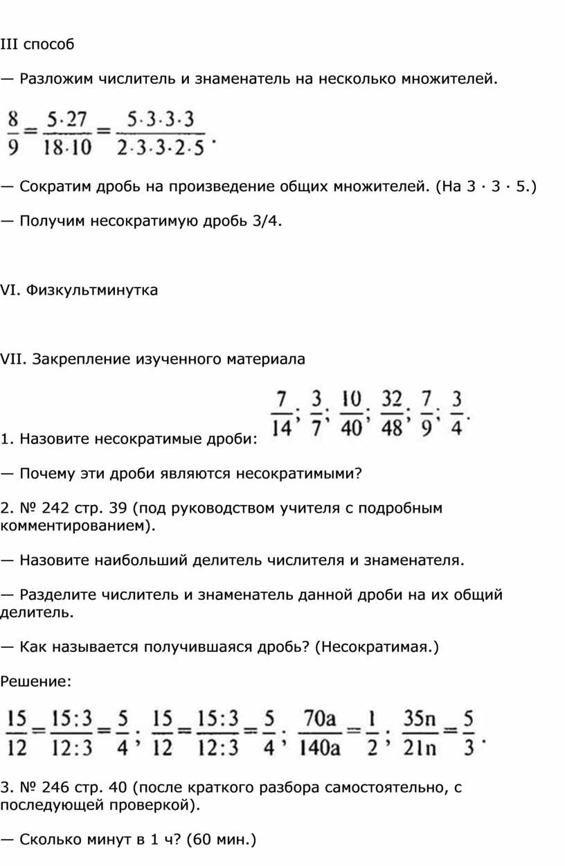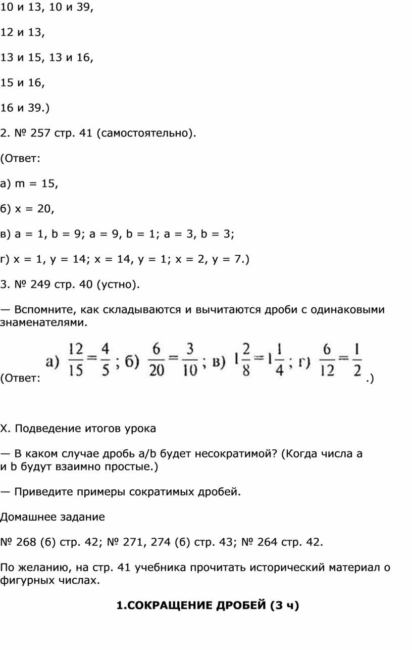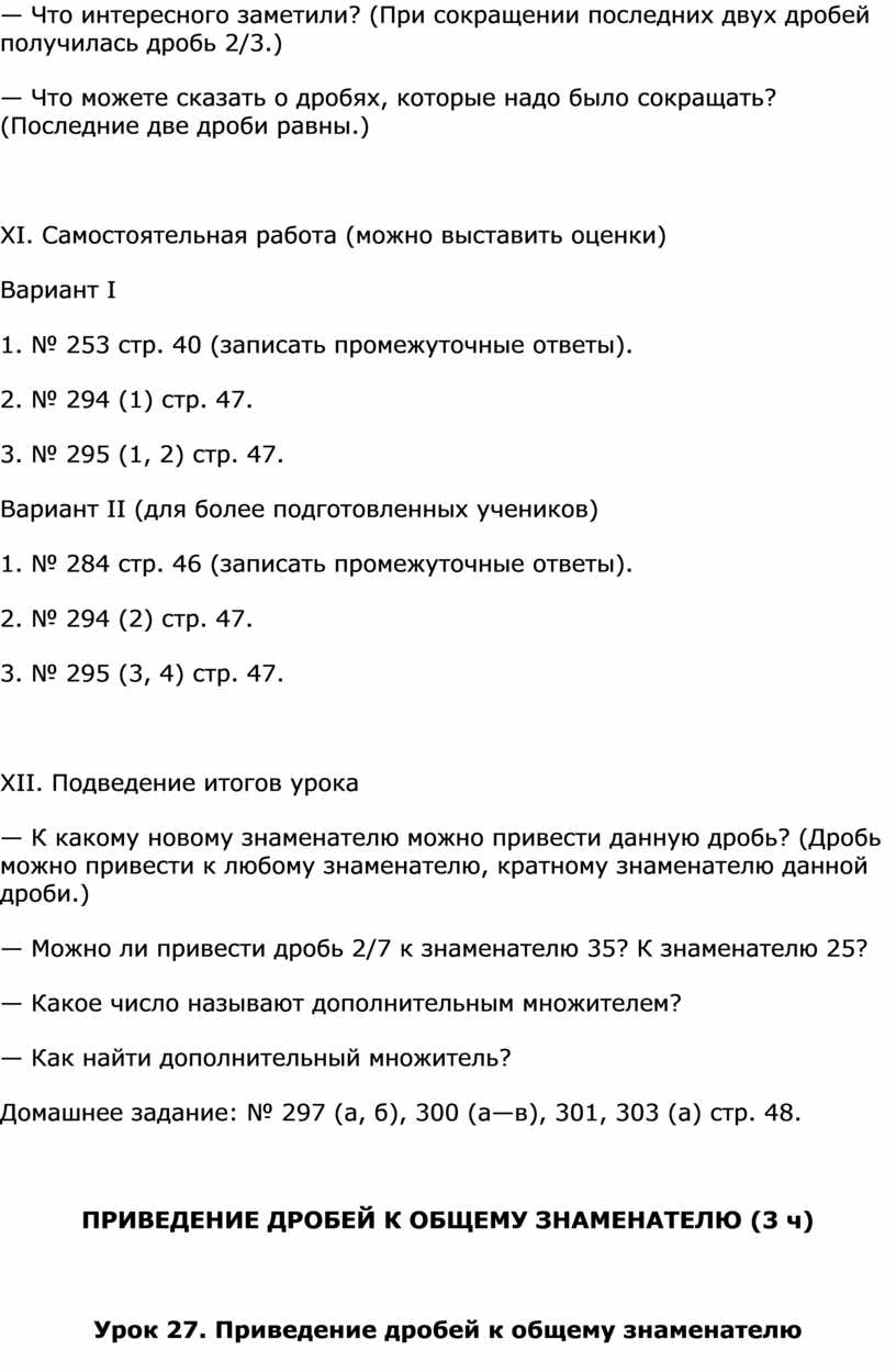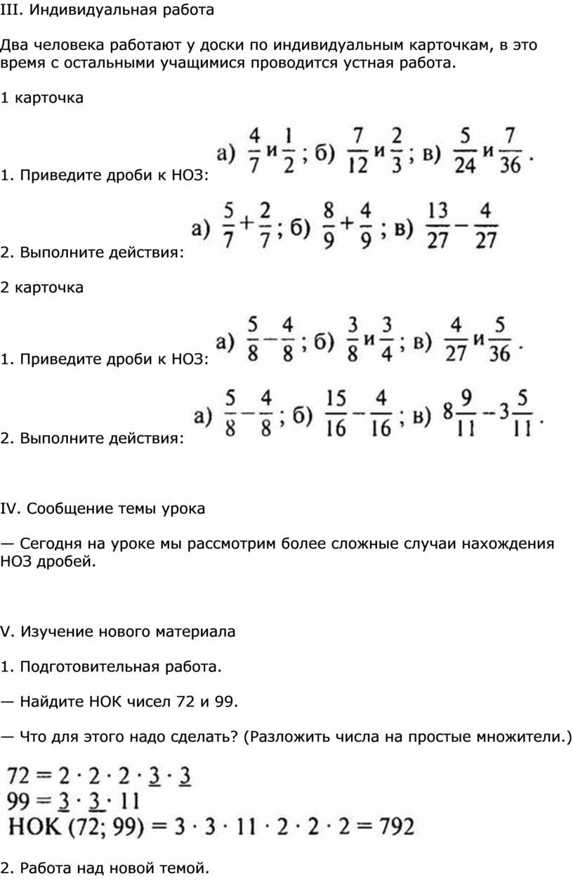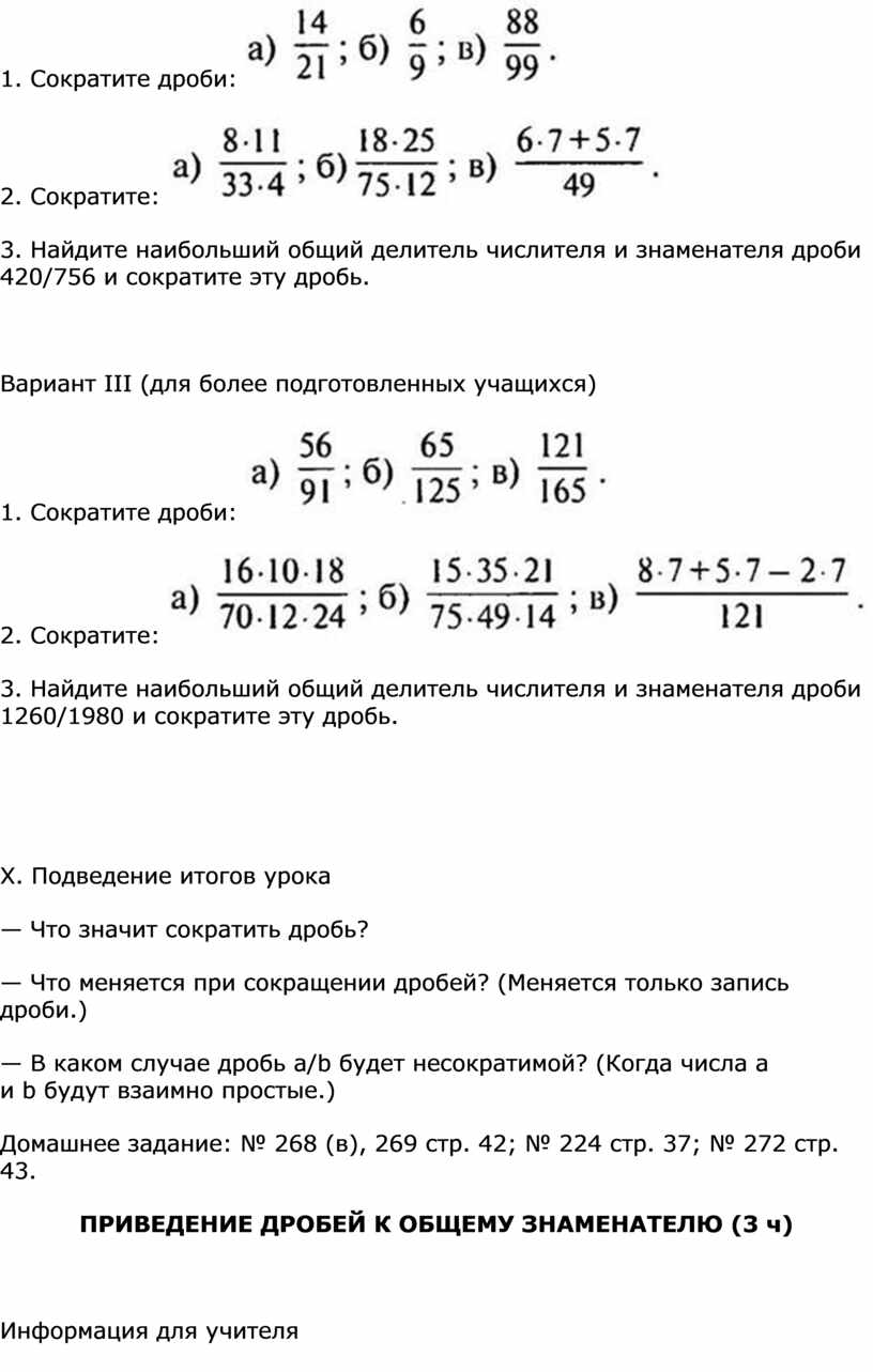 Цели: учить применять основное свойство дроби при выполнении заданий; развивать грамотную математическую речь; совершенствовать сочетание индивидуальной и коллективной форм работы с учащимися; проверить знания и навыки учащихся по изученному материалу.
