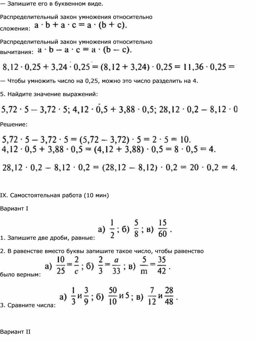— Сегодня мы будем учиться применять основное свойство дроби при выполнении различных заданий.