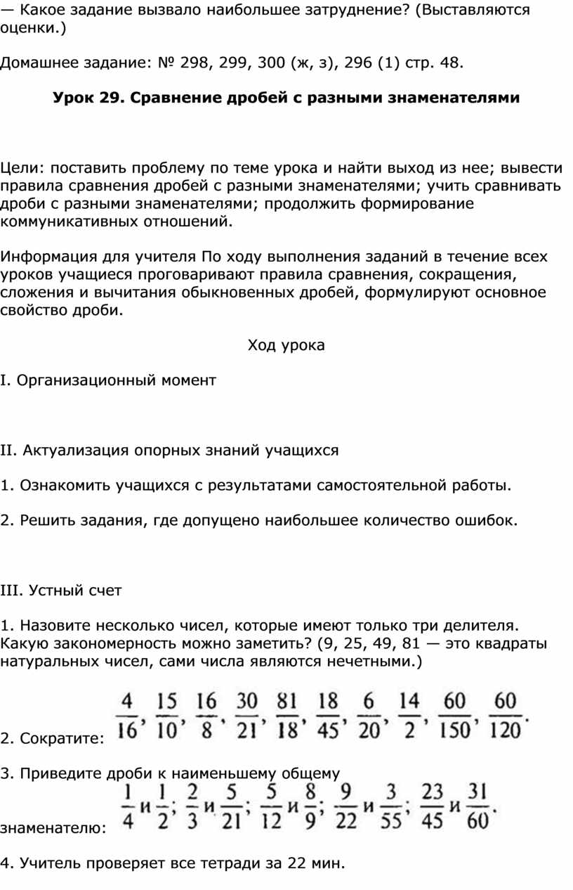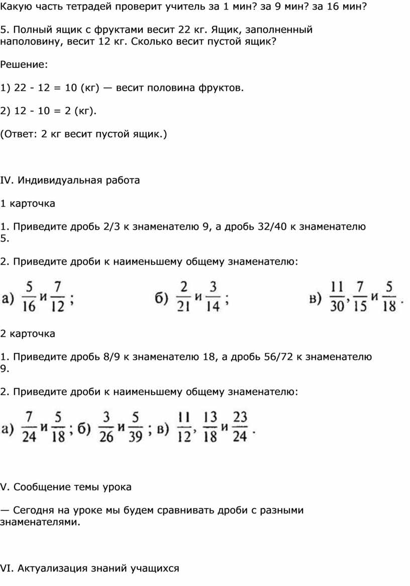 — Сегодня на уроке мы будем сравнивать дроби с разными знаменателями.