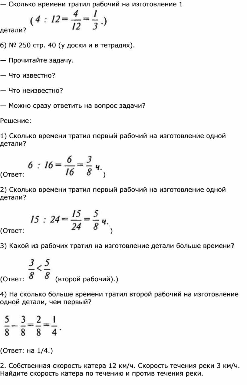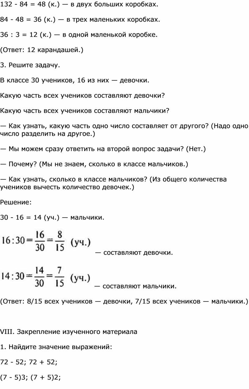 — Что нужно сделать, чтобы ответить на вопрос задачи? (Сначала 12 разделить на знаменатель, затем числитель умножить на получившееся число.)