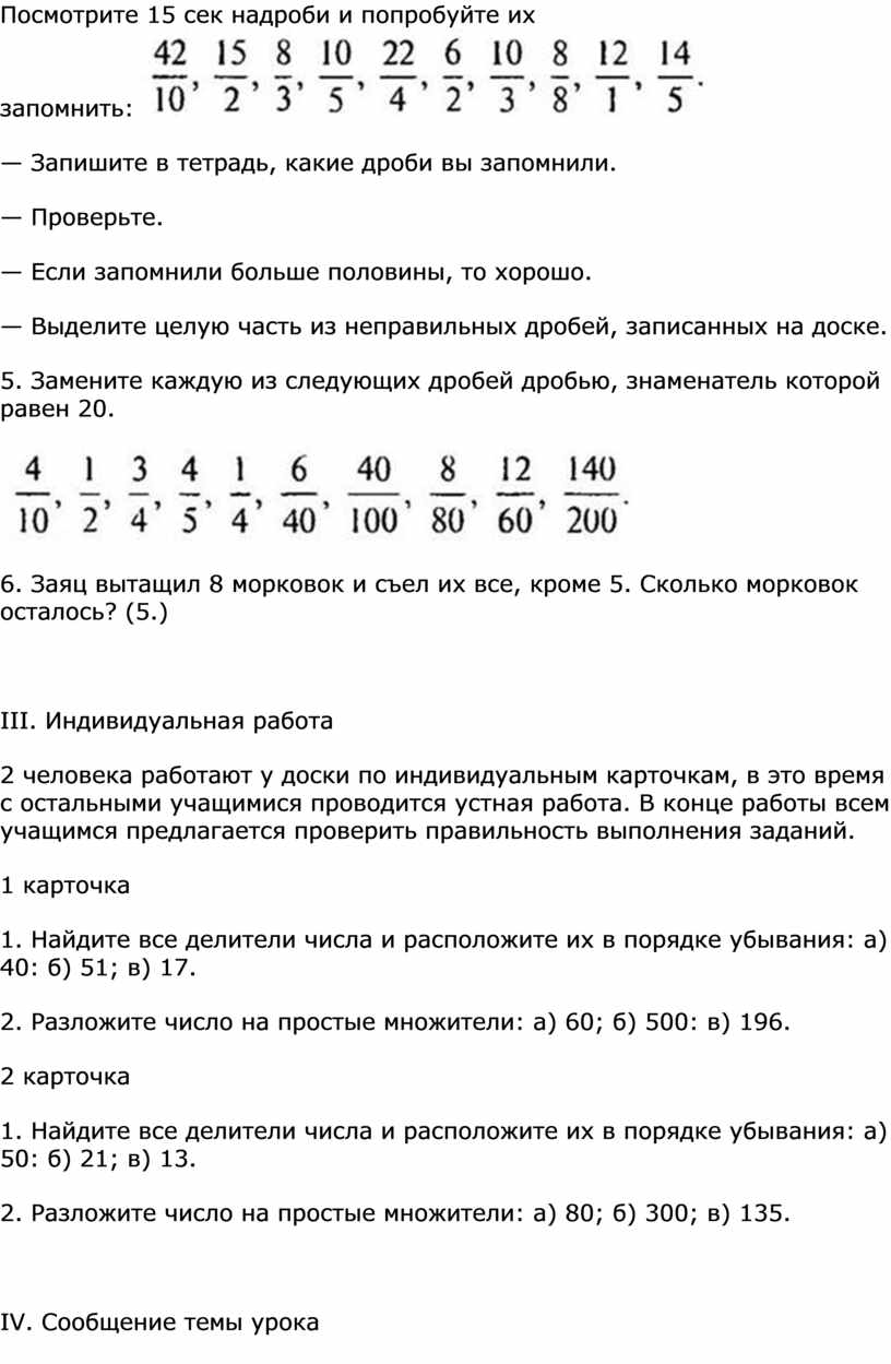 — Запишите в тетрадь, какие дроби вы запомнили.