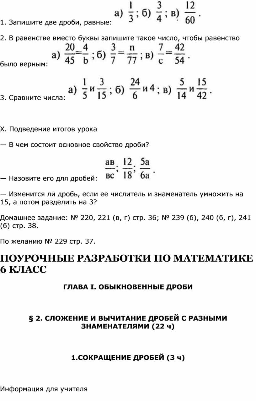 § 2. СЛОЖЕНИЕ И ВЫЧИТАНИЕ ДРОБЕЙ С РАЗНЫМИ ЗНАМЕНАТЕЛЯМИ (22 ч)