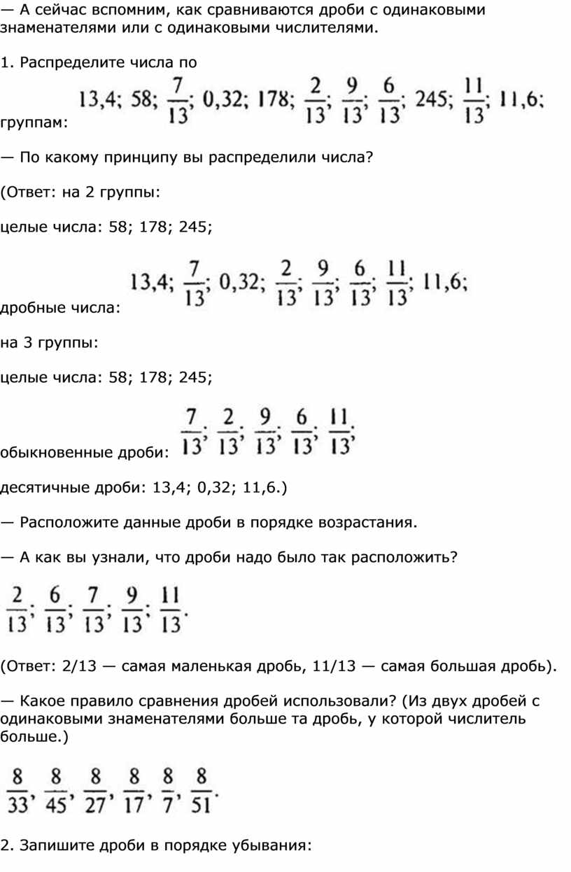 — А сейчас вспомним, как сравниваются дроби с одинаковыми знаменателями или с одинаковыми числителями.