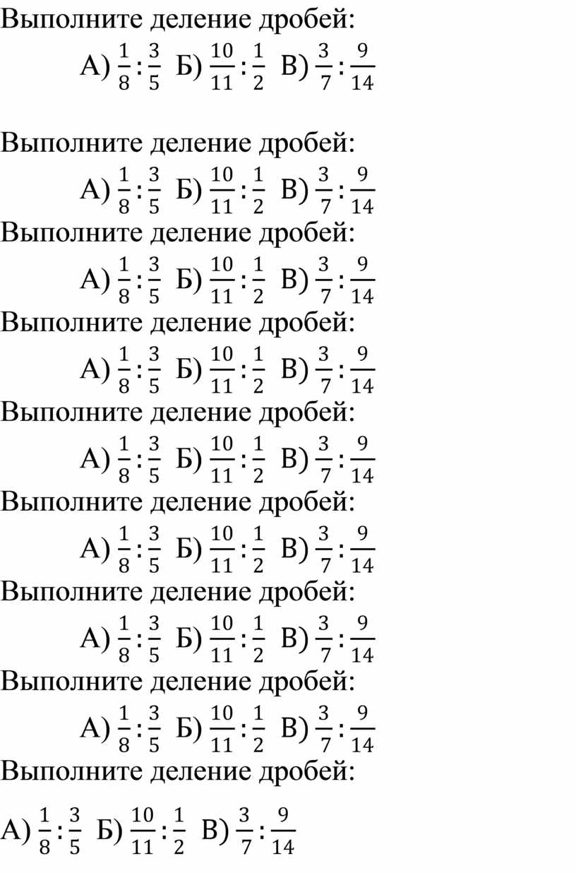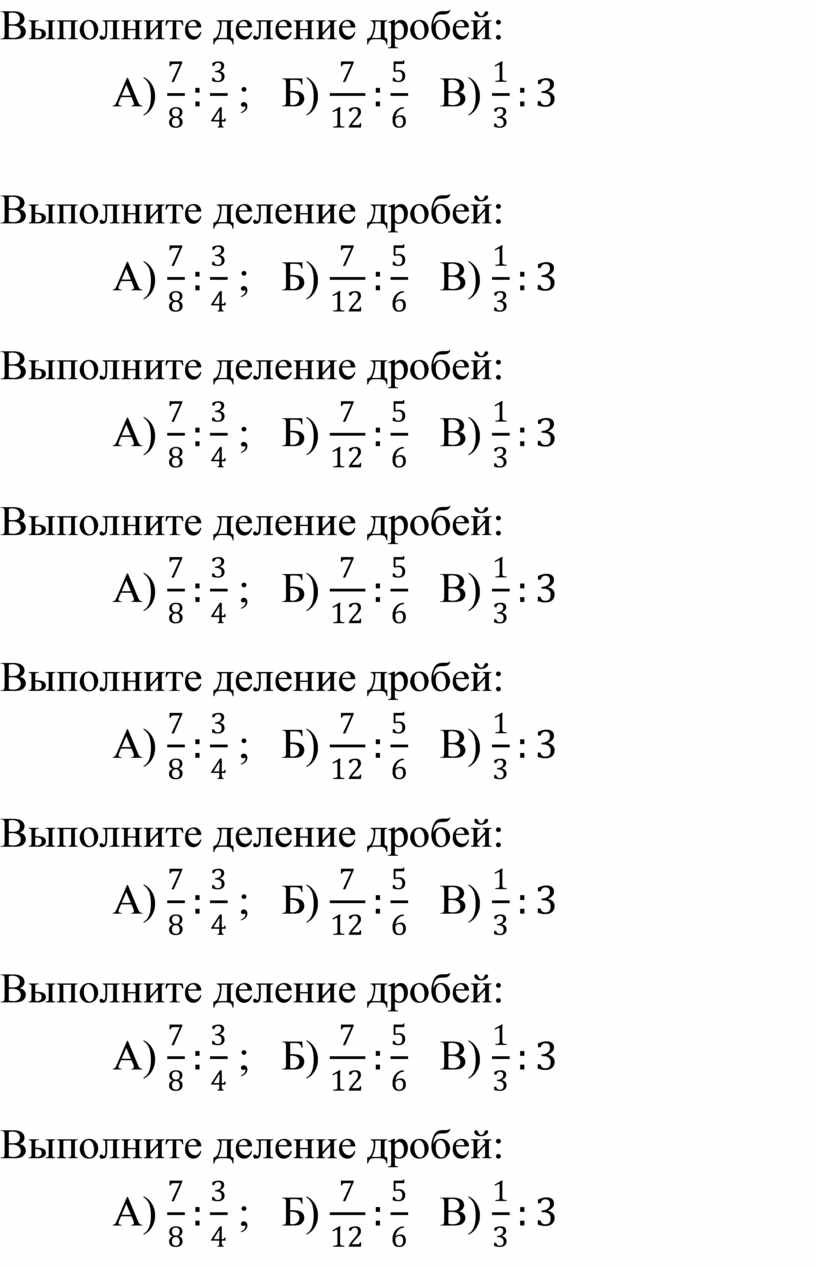 Грубо говоря, чтобы разделить дробь на дробь нужно: первую дробь переписать, деление заменить умножением, вторую дробь перевернуть, выполнить умножение по правилу: числитель умножаем на числитель, знаменатель умножаем на знаменатель.