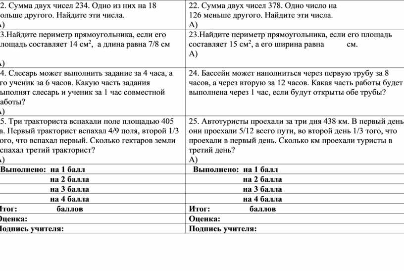 22. Сумма двух чисел 378. Одно число на 126 меньше другого. Найдите эти числа. А) |