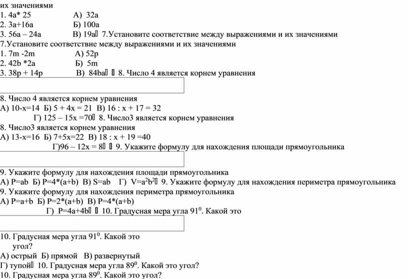 10. Градусная мера угла 910. Какой это угол? А) острый Б) прямой В) развернутый Г) тупой |