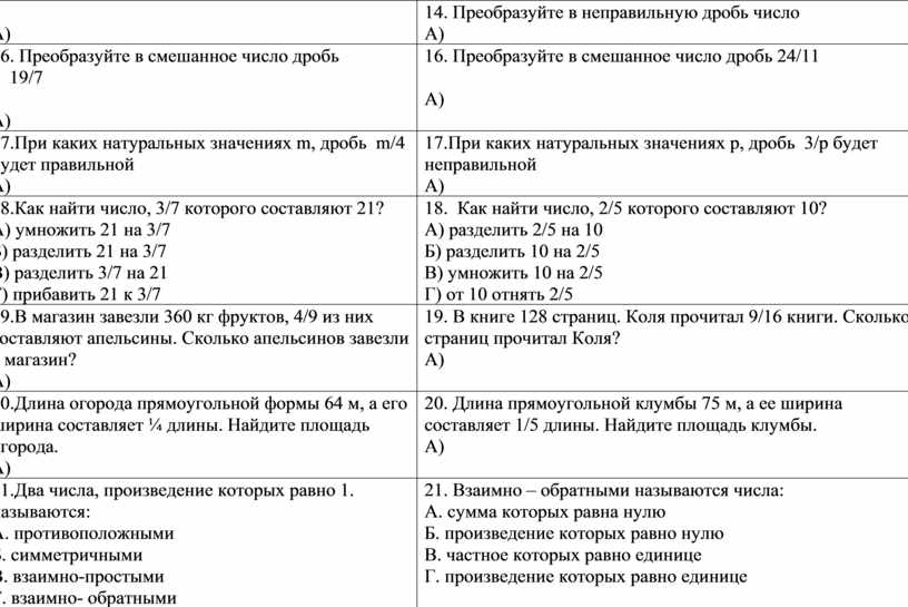 14. Преобразуйте в неправильную дробь число А) |