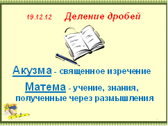 Итак, тема сегодняшнего урока «Деление дробей». Запишите её в тетради. На сегодняшнем уроке мы продолжим отрабатывать навыки деления дробей.