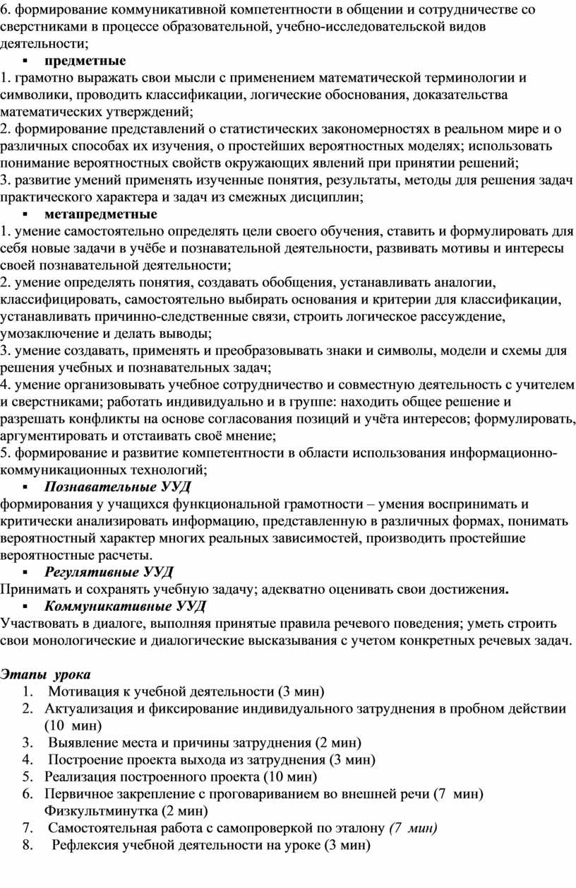 2. формирование представлений о статистических закономерностях в реальном мире и о различных способах их изучения, о простейших вероятностных моделях; использовать понимание вероятностных свойств окружающих явлений при принятии решений;