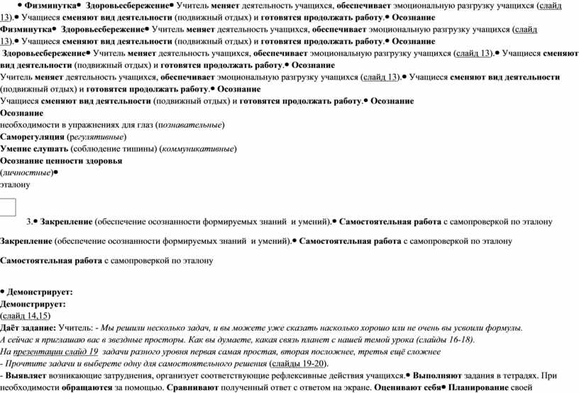 Действия учащихся |