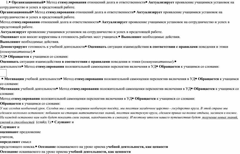 Метод стимулирования положительной самооценки перспектив включения в УД |