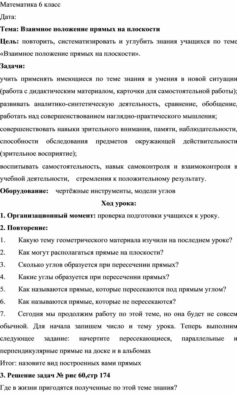 - с какими прямыми работали на уроке? Как могут располагаться прямые на плоскости?