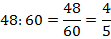Дано количество посаженных и проросших семян. 60 и 48. Можно составить отношение, которое будет показывать, какую часть первое число составляет от второго. Правильную, сократимую.