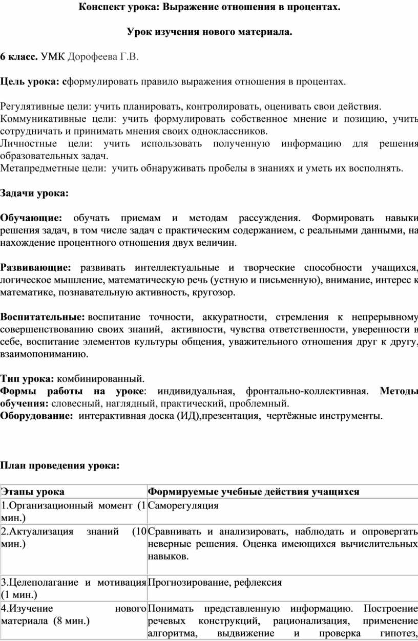 Цель урока: сформулировать правило выражения отношения в процентах.