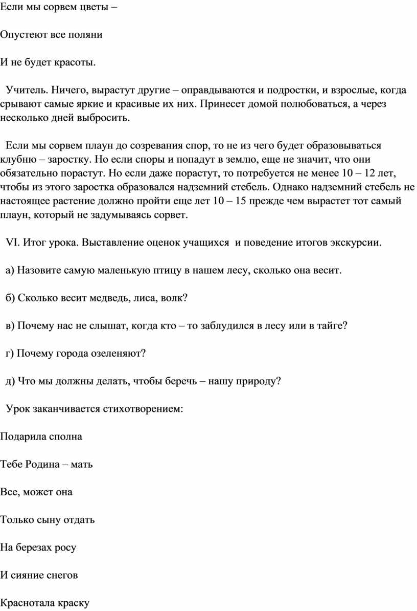 VI. Итог урока. Выставление оценок учащихся и поведение итогов экскурсии.