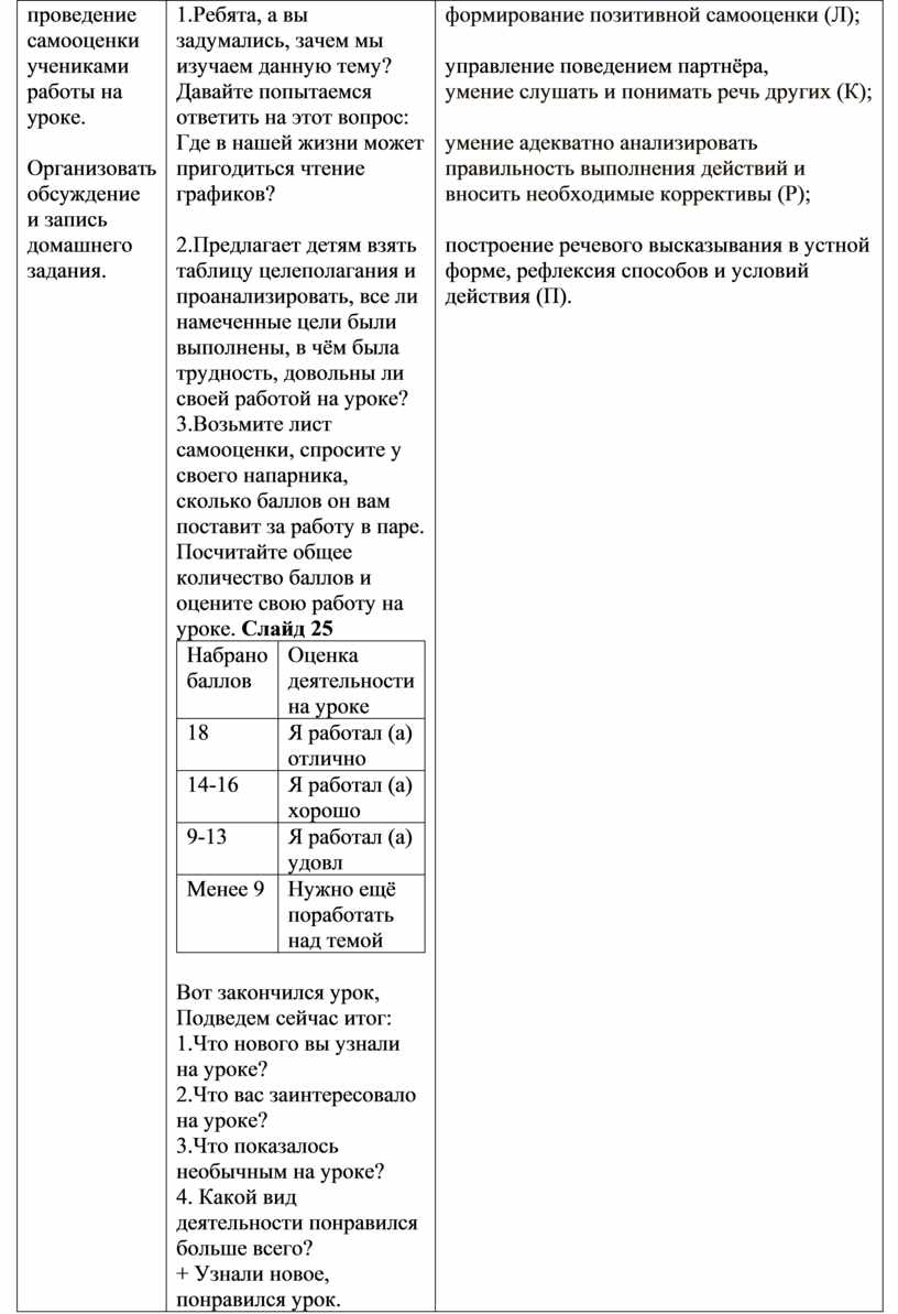 самооценки (Л); управление поведением партнёра, умение слушать и понимать речь других (К);