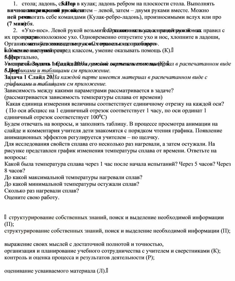 выражение своих мыслей с достаточной полнотой и точностью, организация и планирование учебного сотрудничества с учителем и сверстниками (К); контроль и оценка процесса и результатов деятельности (Р);